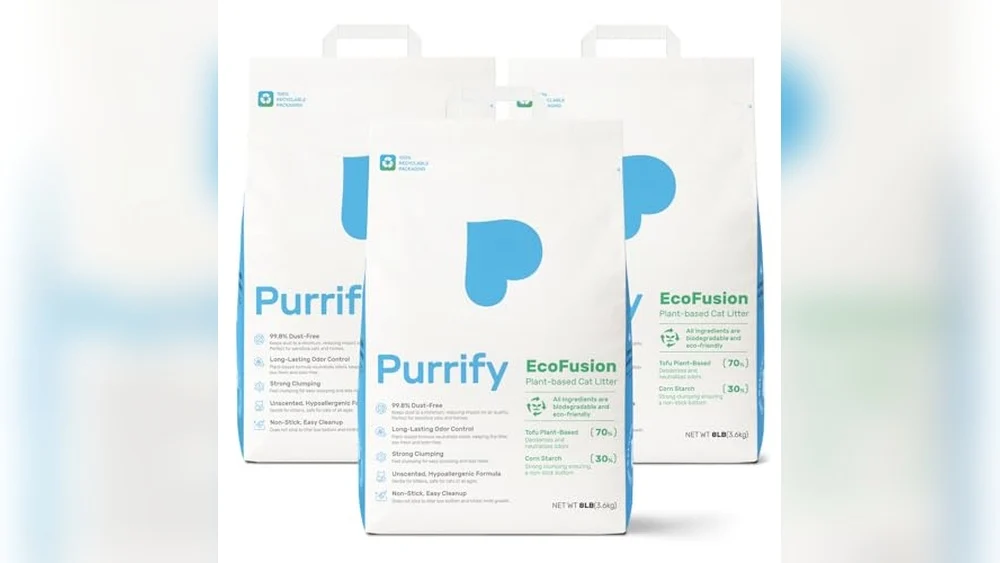 1. Purrify EcoFusion Cat Litter 3 Pack (8lb Each) Tofu & Corn Blend, Zero Powdering, Zero Mess, 99.8% Dust-Free, 98% Odor Control, Fast Clumping, Non-Stick, Includes Bonus Cat Scratcher