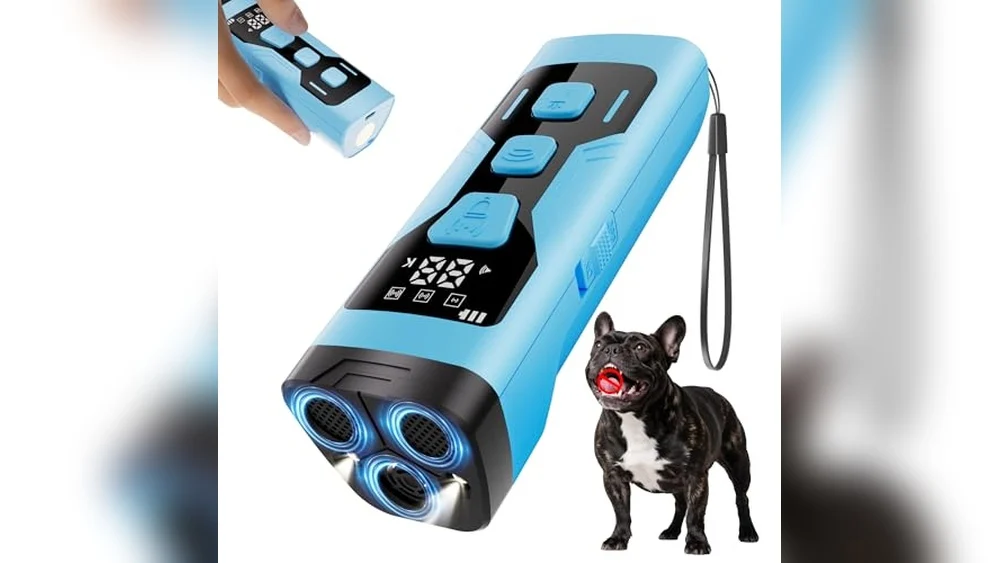 This anti-barking device works well to reduce my dog’s noise indoors and outside. The 55-foot range covers my whole yard easily. Three heads help cover different directions for better control. Using the flashlight feature is handy during nighttime walks. The device is light and easy to carry anywhere. It helped train my dog to stop barking quickly. No complicated setup, just simple and clear to use. A useful tool for peaceful moments at home.